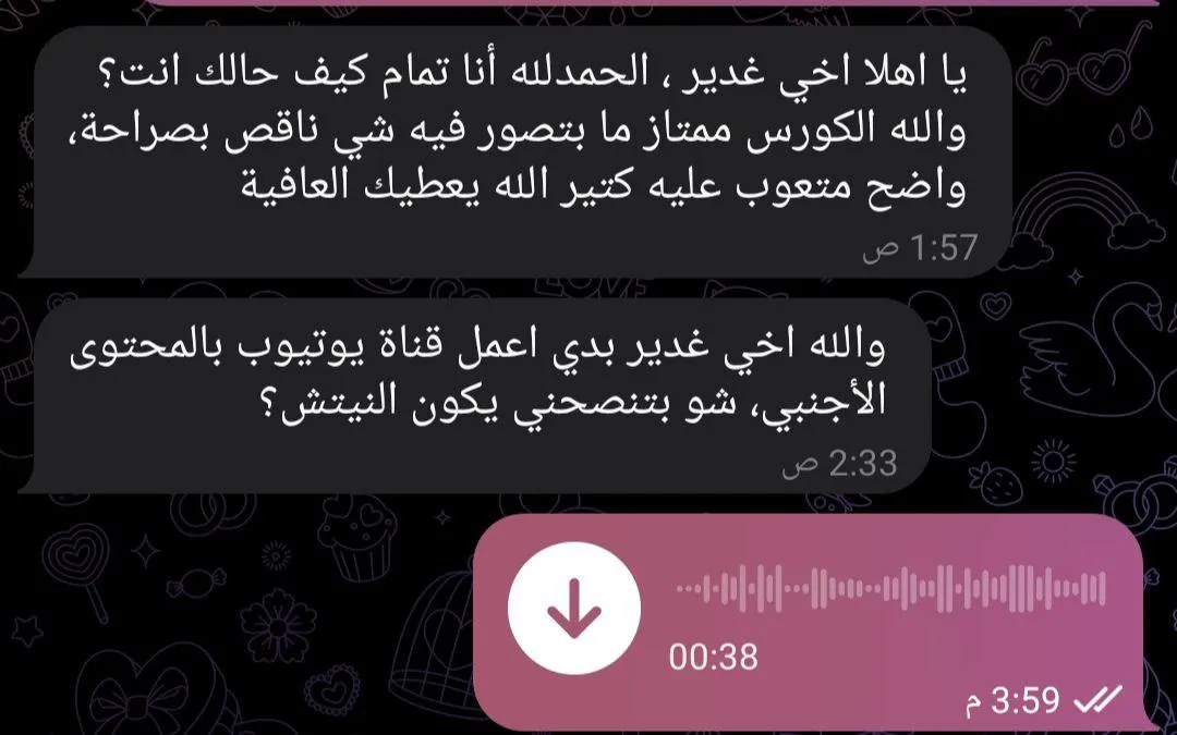 تدريب عملي معي شخصياً ، سيجعلك مبدع في بناء القنوات.