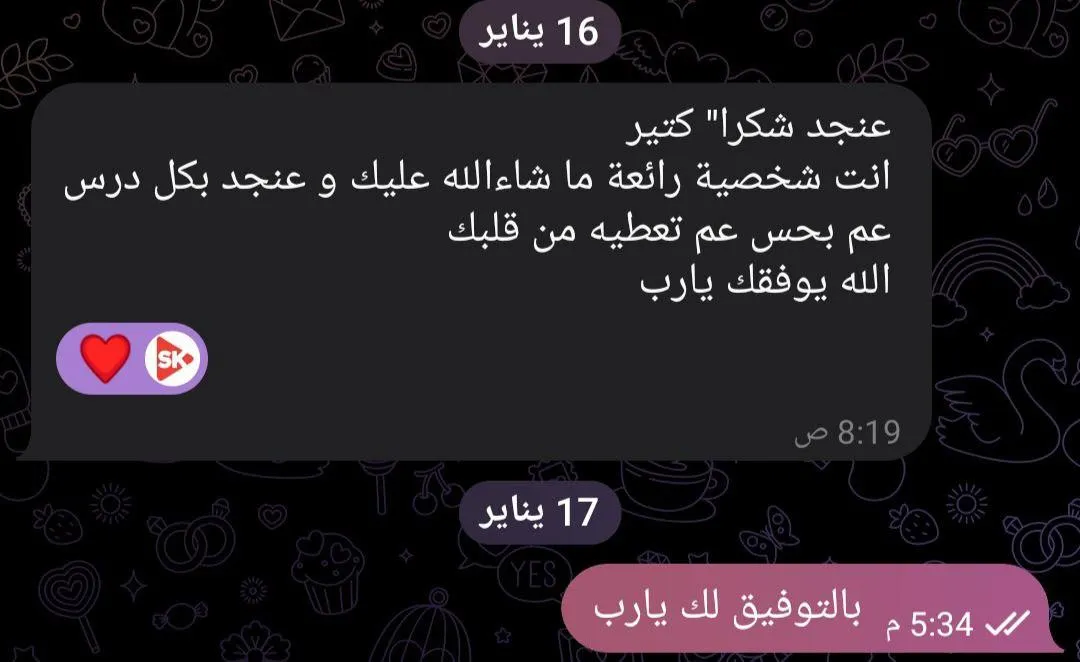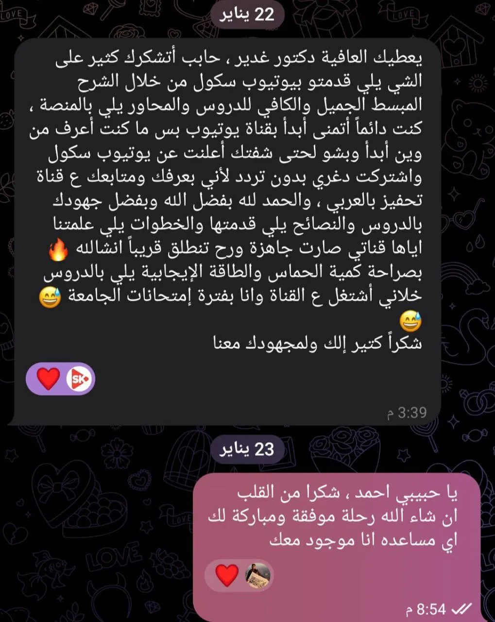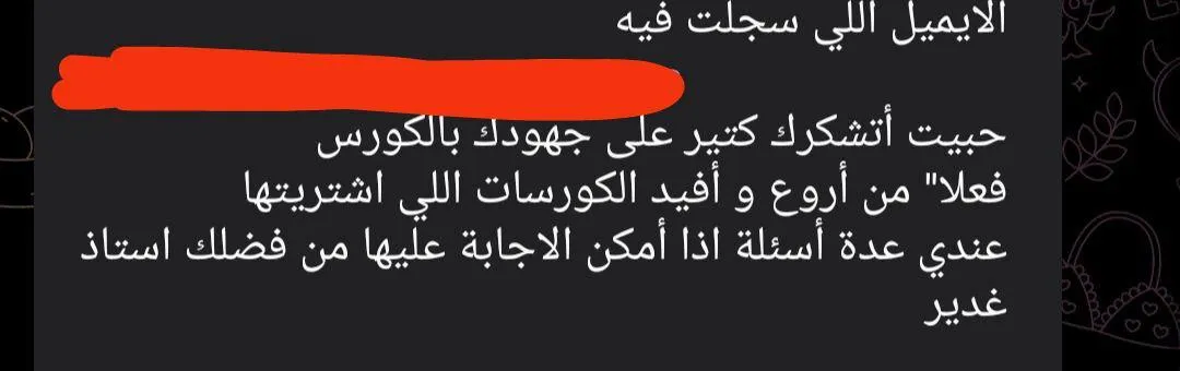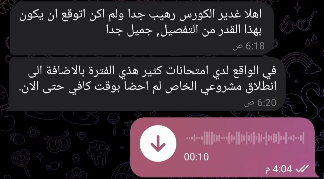 عندما تشترك في هذا الكورس سيبقى معك مدى الحياة ، تتعلم منه متى ماتريد ، وبالنسبة للدعم فيوجد مجموعة خاصة بطلاب الكورس حصراً و سأكون موجود شخصياً داخلها للرد على اسئلتك ومتابعة نجاحك