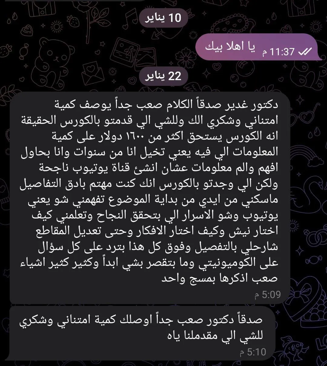 تدريبات عملية معي لتنمية عقلية اليوتيوبر (القيمة =69$)